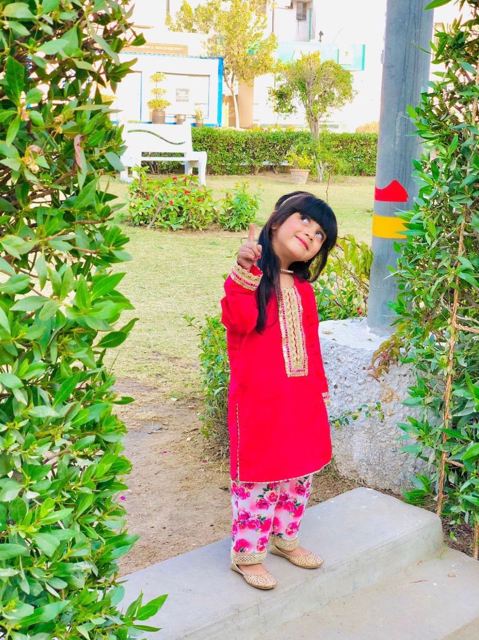 The top is crafted from soft cotton silk, adorned with delicate lacework for a touch of elegance. It pairs beautifully with printed cotton trousers that also feature lace detailing, adding a playful yet refined vibe. The ensemble is completed with a light chiffon dupatta.